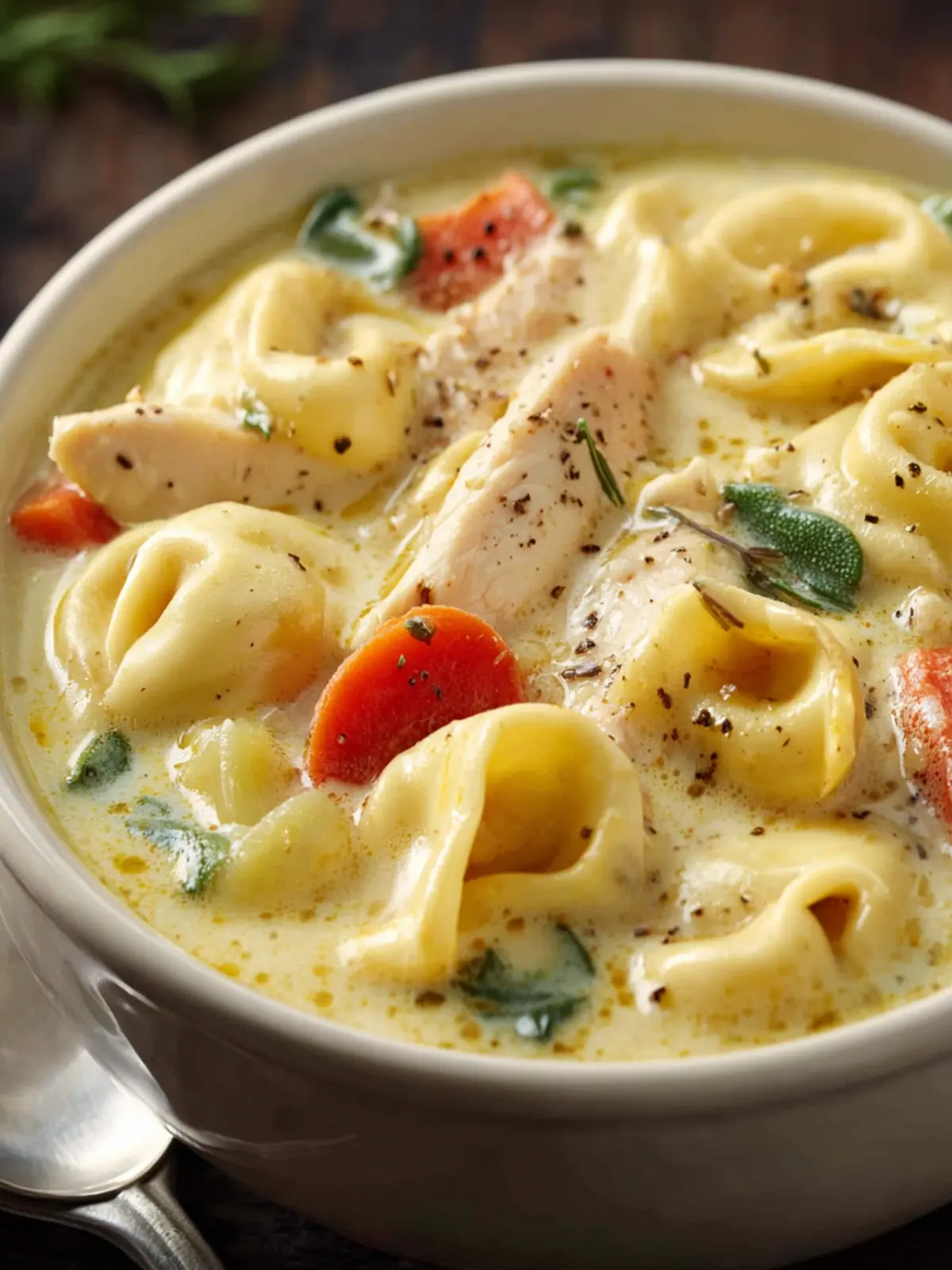 A creamy and hearty chicken tortellini soup, perfect for a cozy meal.