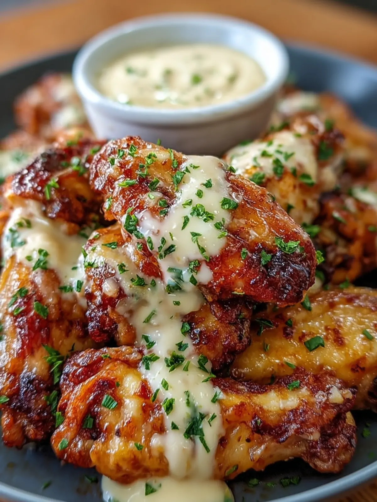 Let me take you back to a cozy evening with friends gathered around the table, laughter filling the air as I plated these heavenly wings. The moment the creamy garlic aroma wafted through the room, eyes lit up in anticipation. With just one bite, the chorus of praises began, and it became apparent that this simple dish was going to steal the show. Together, we savored the crispy skin, the creamy coating, and the umami depth of the parmesan.