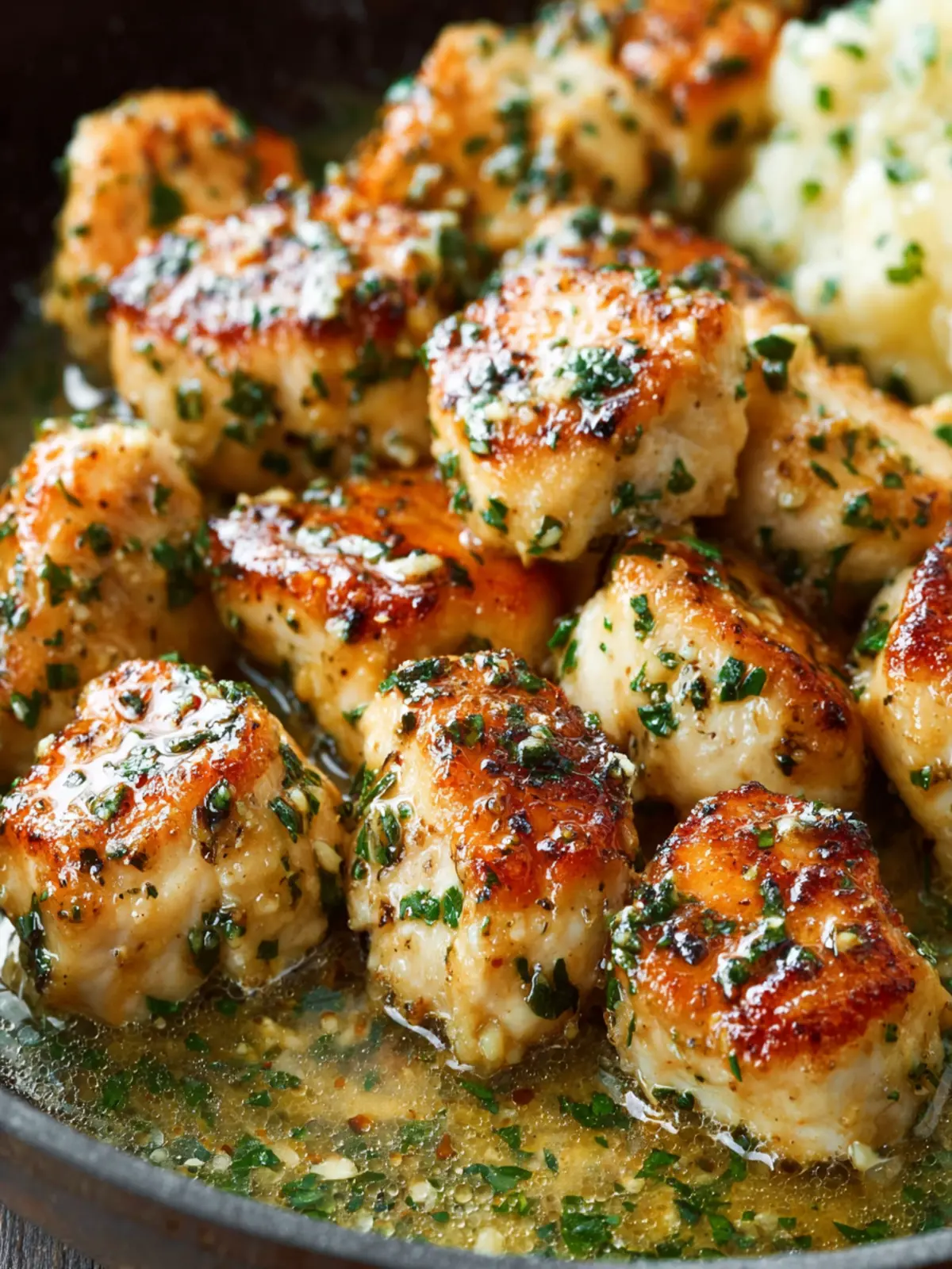 Opt for boneless, skinless chicken thighs instead of breasts. Thighs tend to be juicier and more forgiving regarding cooking time, ensuring your garlic butter chicken bites are tender and flavorful.
