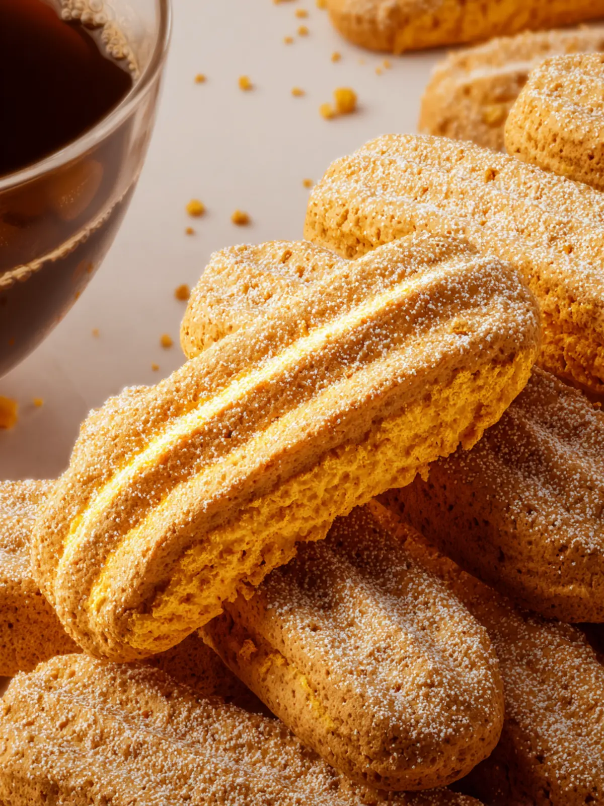 Light and crispy gluten free ladyfingers, perfect for desserts like tiramisu.