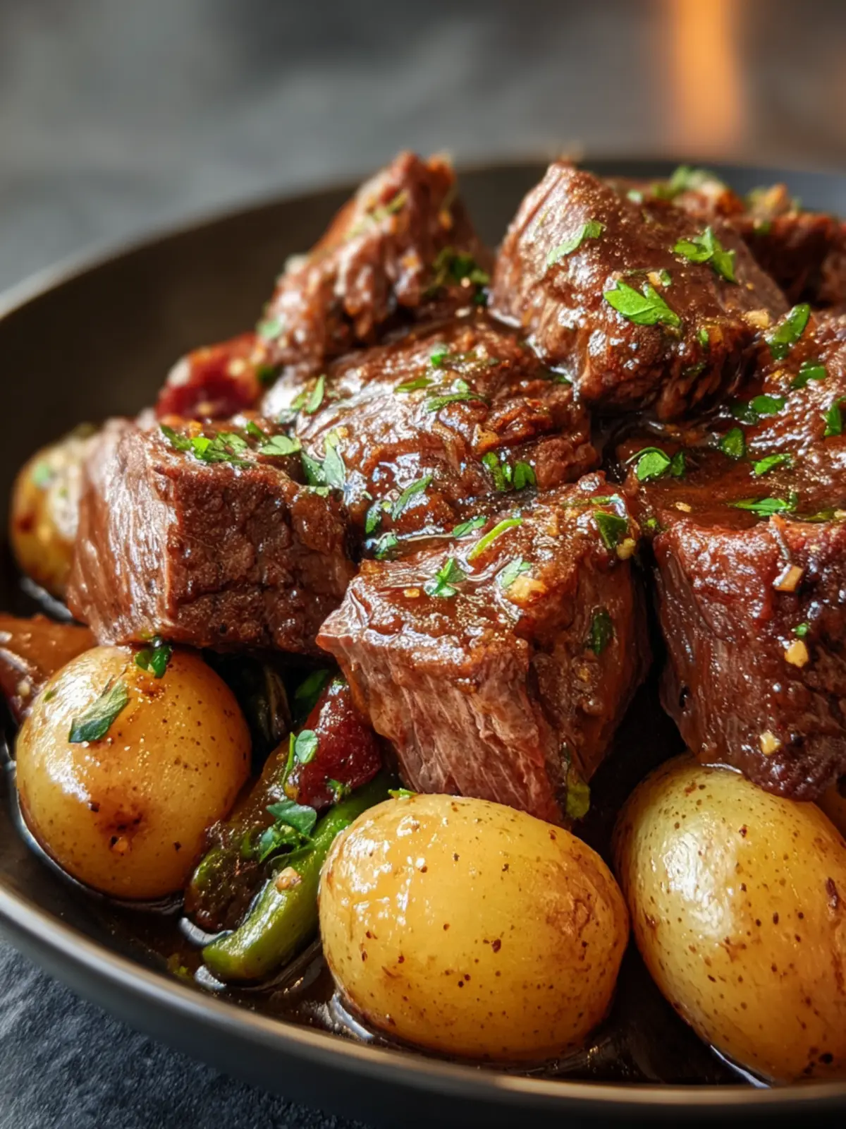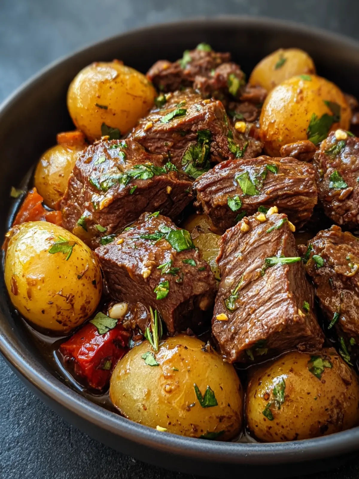 This tender garlic butter beef stew is packed with flavor and perfect for a cozy meal.