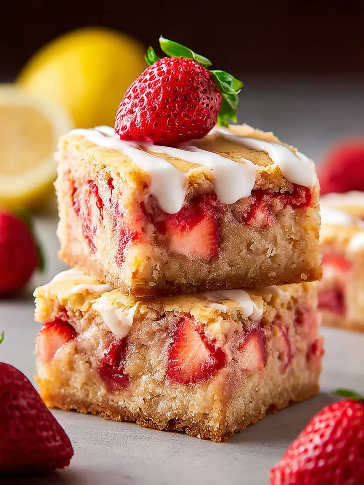 • Flavor balance: The tartness of the lemon complements the strawberries, preventing the blondies from being overly sweet.