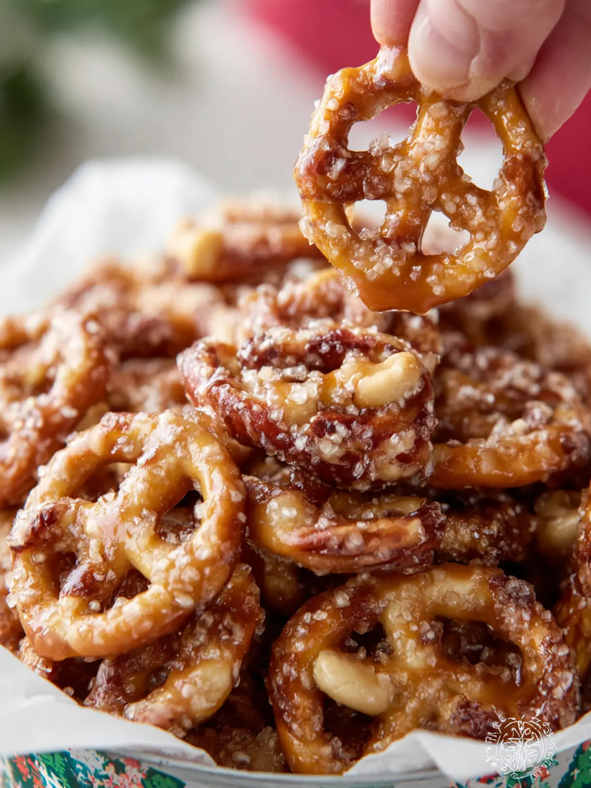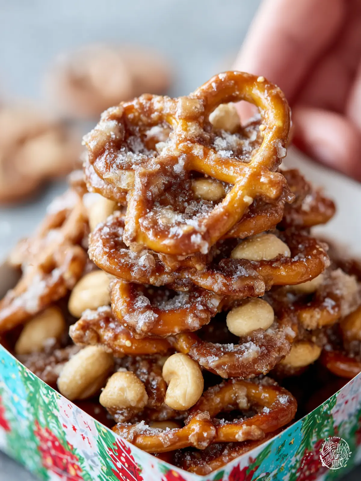 Cashews: For that nutty depth, lightly salted cashews steal the show. Their creamy crunch complements the flaky pretzels. If cashews aren’t available, almonds or pecans can work just as well!